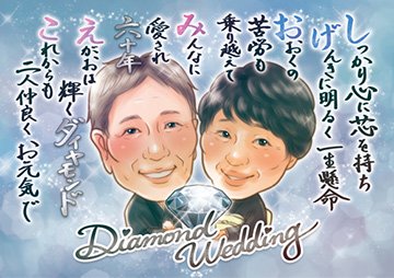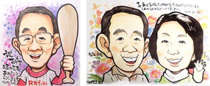 長い間、家族を支え続けたご両親へ、還暦という一生に一度しかない記念日に似顔絵のプレゼントはいかがですか?