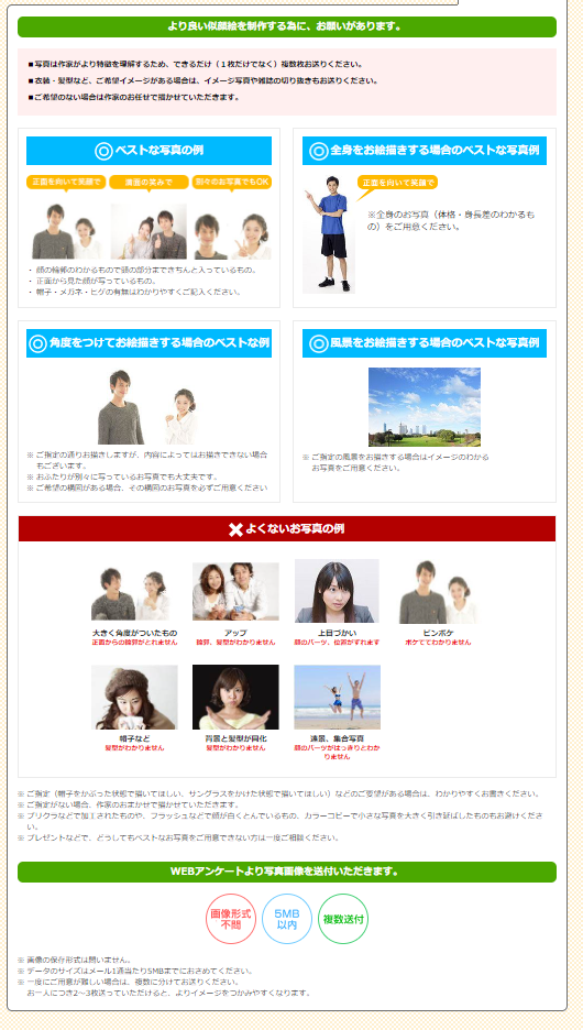 アンケート提出後すぐに似顔絵師さんが制作を開始するため、提出後の変更いたしかねます。