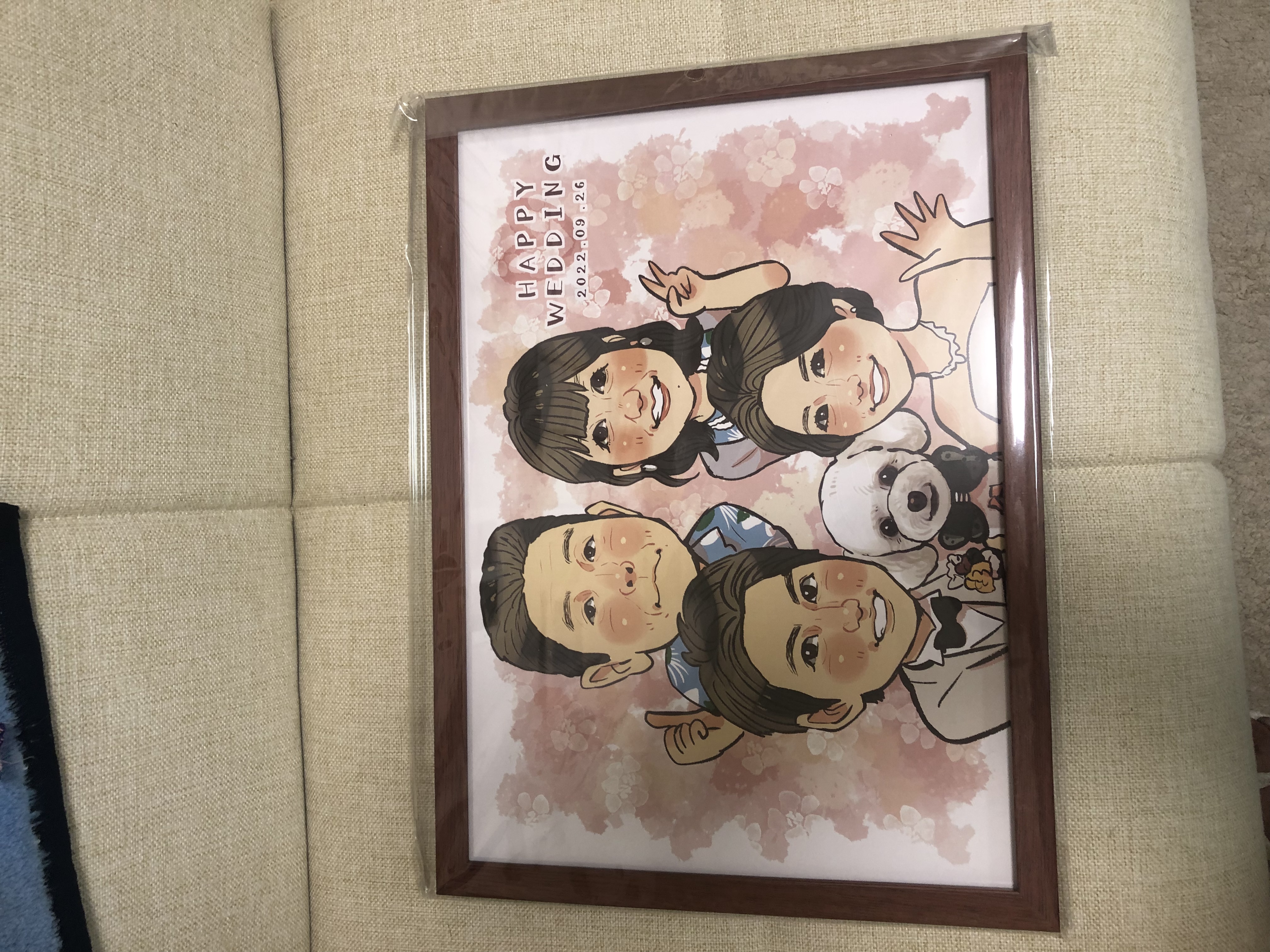 似顔絵を書いてもらう機会ってなかなかないので、写真で注文できてフレームまで付けていただけるので、とても良い記念になりました!