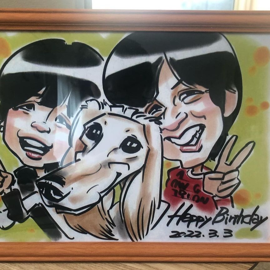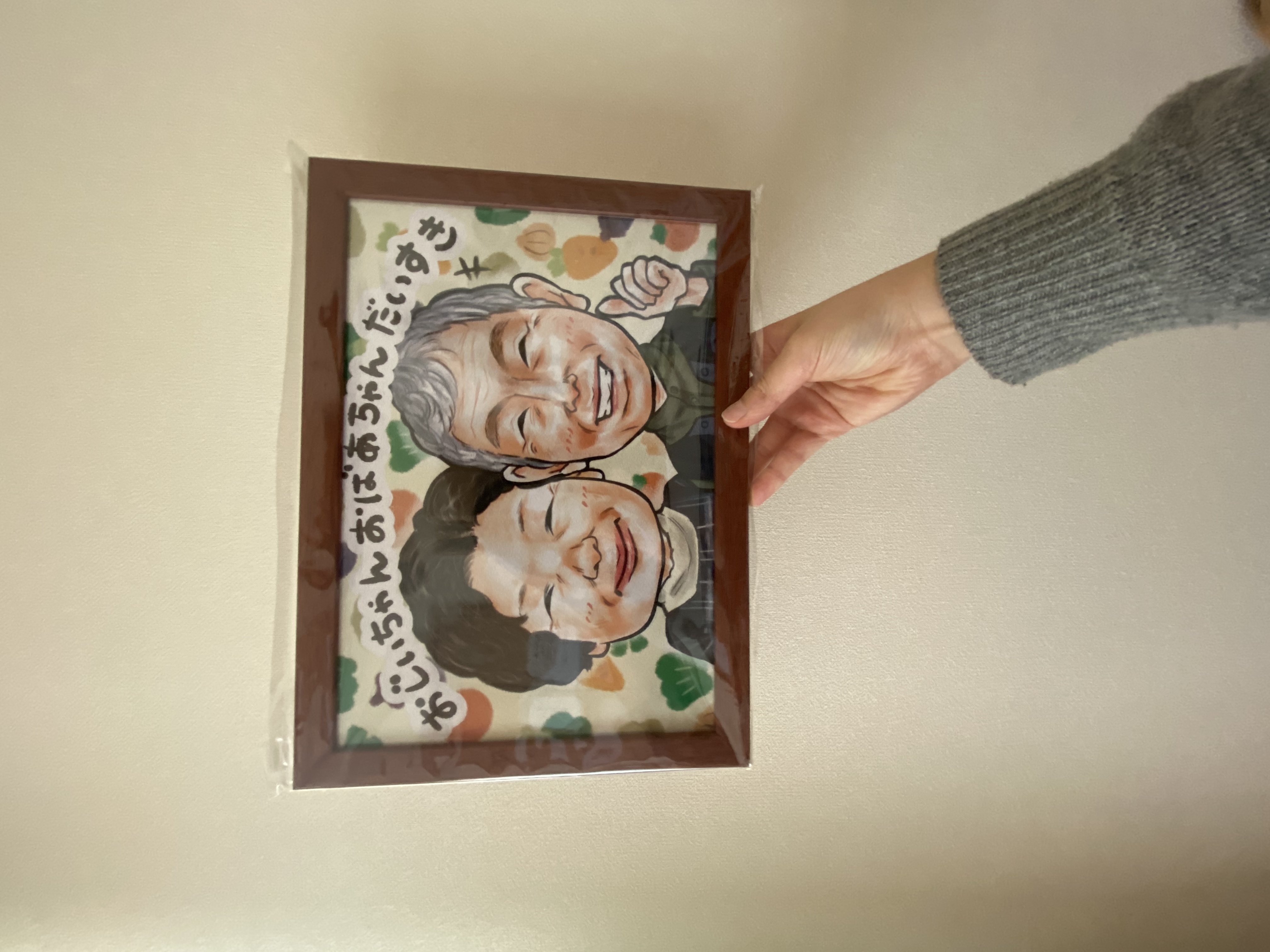 最高に素敵な作品でした。祖父が誕生日で、なにか記念に残るものをプレゼントしたいと思ってネットで作品を拝見させて頂きました。母と相談し、絵描きさんを決めて楽しみに待っていました。誕生日パーティーは今週の日曜なのですが、絶対喜ばれると思います。すごくお願いした通りに書いていただいて満足しています。また縁があればお願いしたいです!