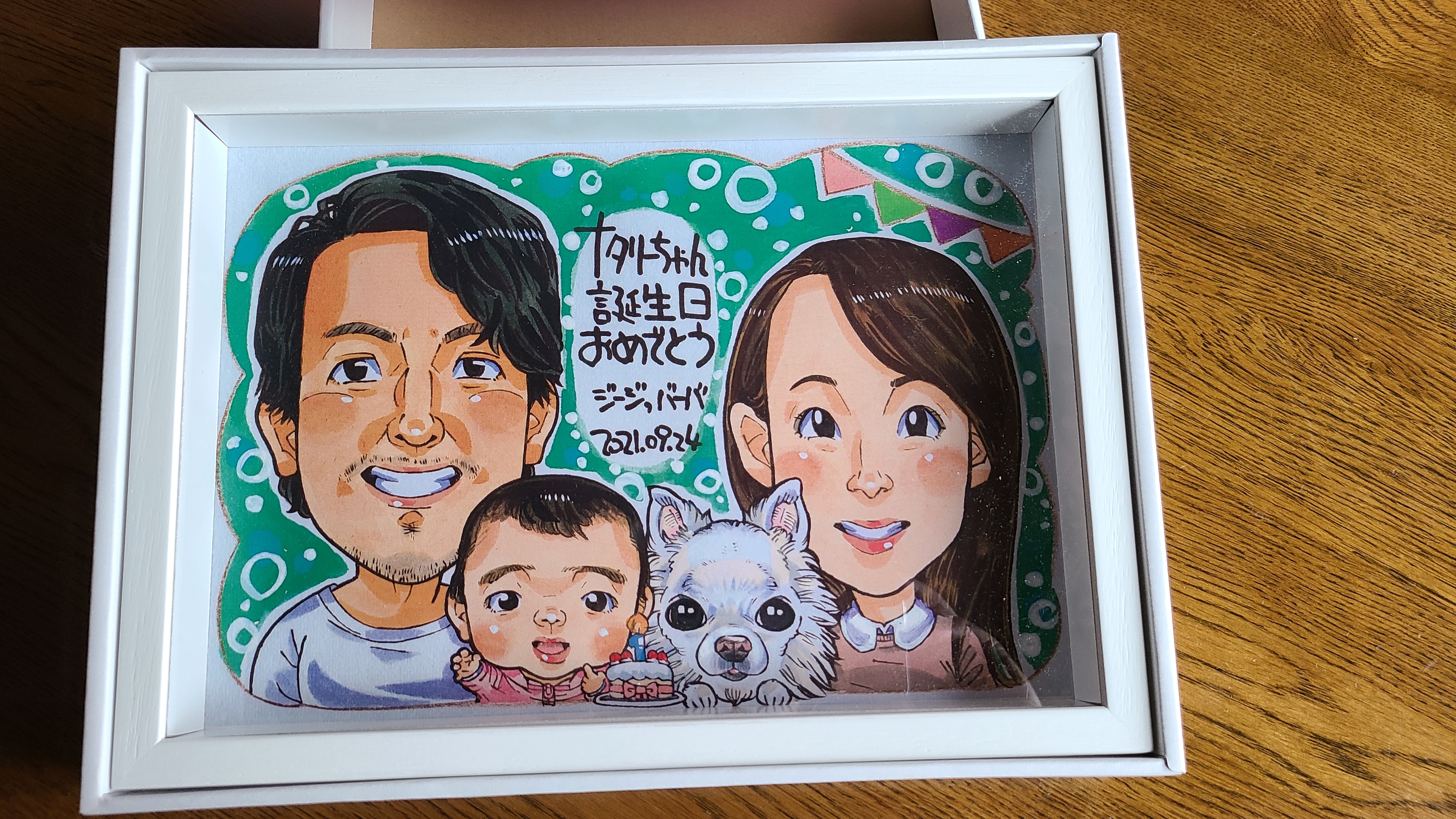 このお祝いとしてお花とも考えましたが、記念日に残るものと思い貴社に似顔絵依頼しました!