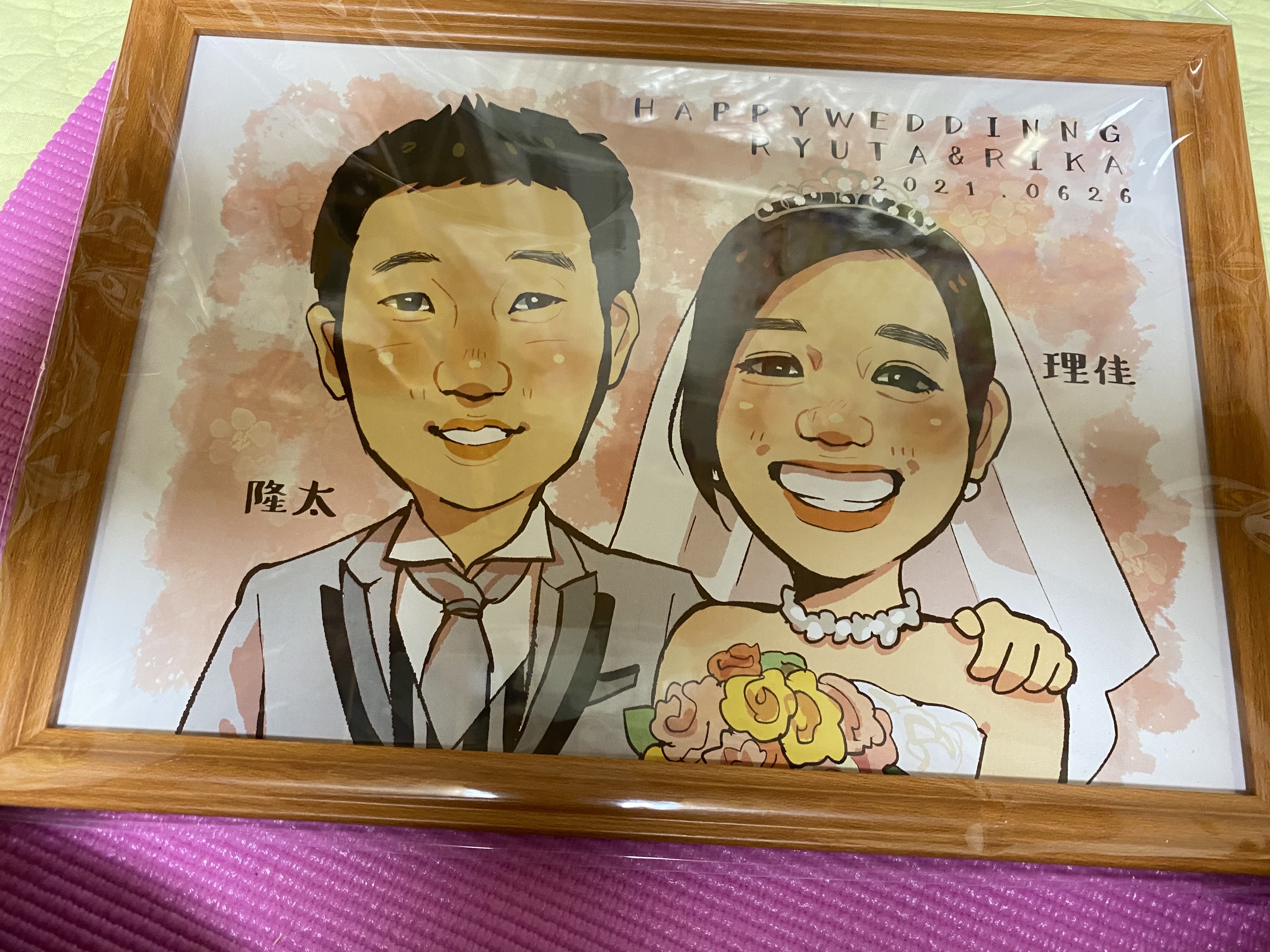 今回入籍用にお願いしました。 コロナ禍で結婚式が出来なかった分、似顔絵だけでも結婚感を味わいたく、礼服とウェディングドレスを着た設定で描いていただきました。 直近で頼んだにもかかわらずとても丁寧にご対応いただき、晴れやかな気持ちで入籍の日を迎えることができました。 二人にとっての素敵な宝物をありがとうございました。