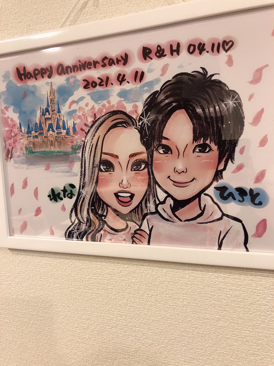 2年記念日で似顔絵をプレゼントしたくて依頼しました。 実際に対面しての似顔絵ではなく 写真で描いて頂く形だったのでどういう仕上がりになるか不安な思いもありましたが、 届いた似顔絵は本当に素敵でした。 特徴をしっかり捉えていて色の使い方もとても気に入りました。 依頼した日にちが記念日ギリギリで当日には間に合いませんでしたが できる限り早めにお届けさせていただきますと 丁寧な返信がありスピーディーに対応して頂きました。 また大切な日に利用させていただきます。