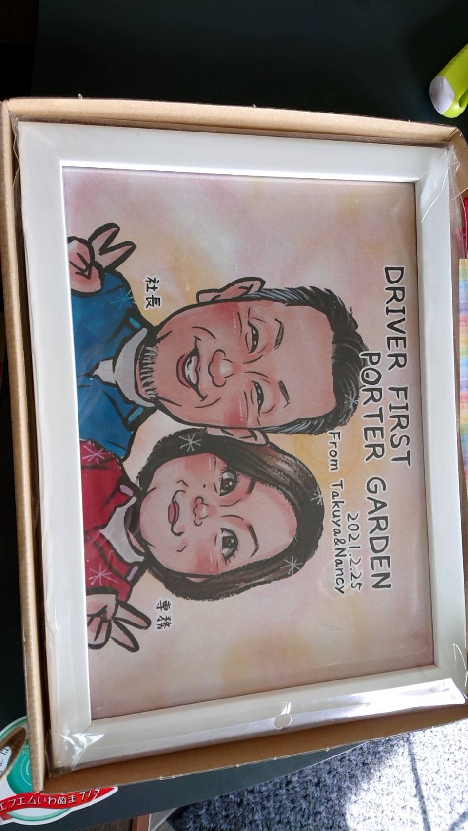 素晴らしい仕上がりです。 手持ちの画像が2枚しか無くお送りさせていただきましたが、 お描きいただいた方々の雰囲気や常の表情が如実に再現されていて 、その出来栄えに驚きました。 今回は常にお世話になっている社長ご夫妻へのプレゼントとして、依頼致しました。 早速、お届けしたところ、たいそう喜んで頂き事務所に飾って頂けました。 機会があればまたお願い致します。 この度は想像以上の作品を ありがとうございました。