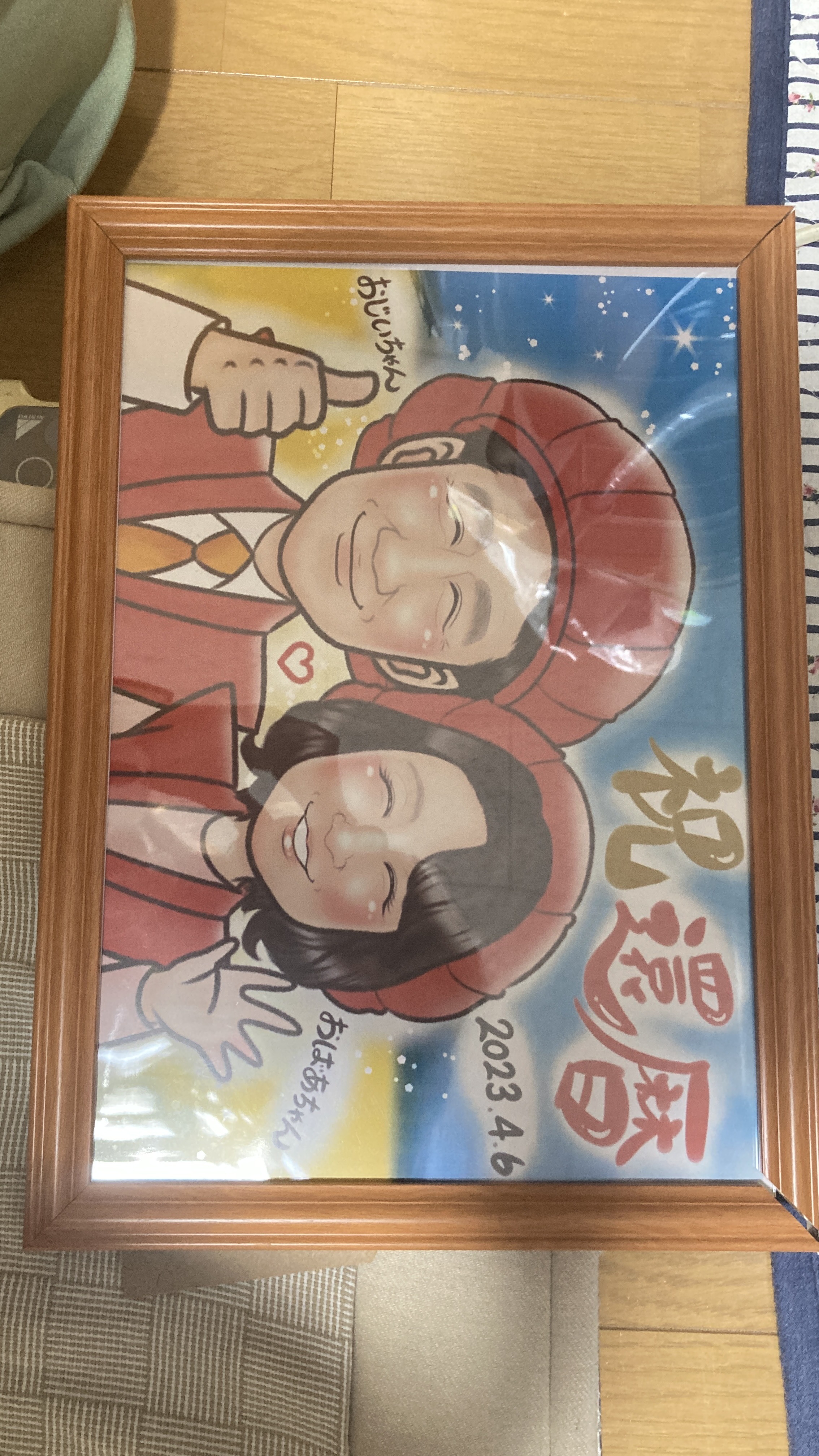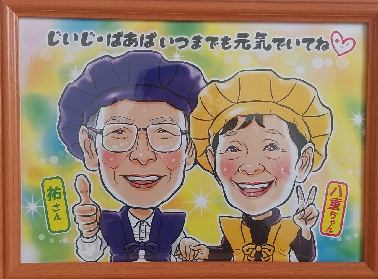 父の似顔絵と母の似顔絵を並べて飾ってくれていますが、バランスも考えて制作していただけたのでとてもいい感じです!