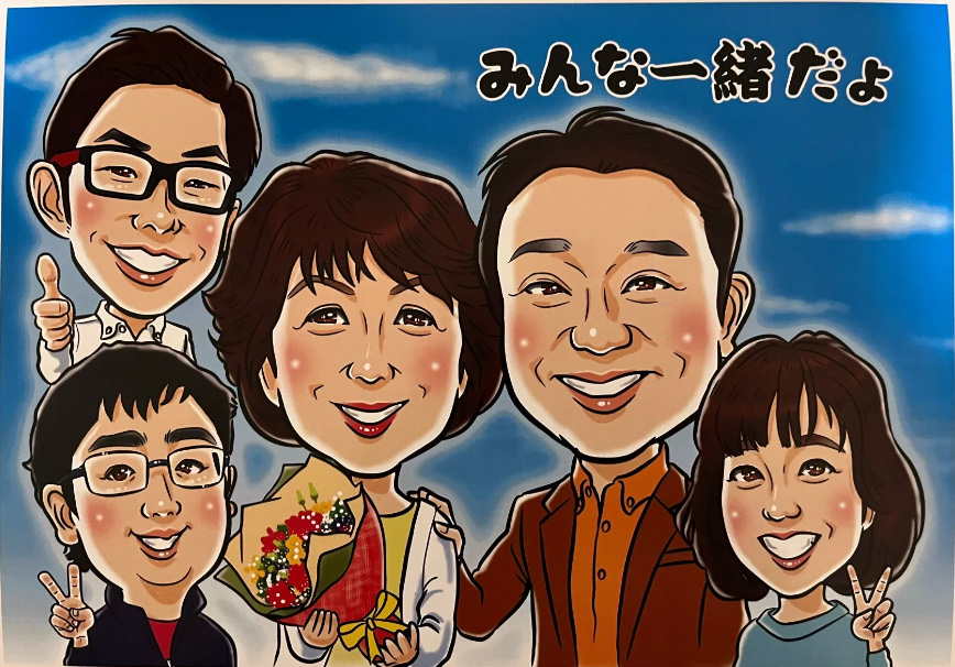 以前父の還暦祝いにこちらで依頼した似顔絵をプレゼントしたところ大盛り上がりでとても喜んでもらえたので、今回は母の還暦祝いに前回と同じ方でリピートしました。